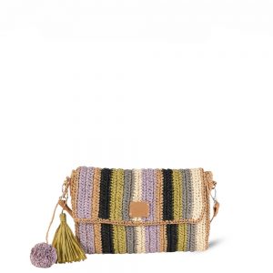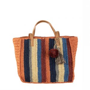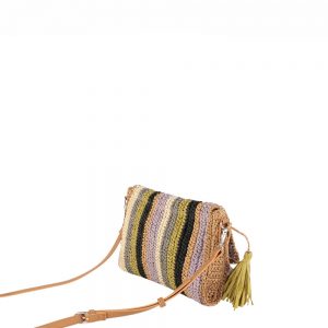 Τσάντα πολύχρωμη με πλέξη.